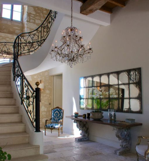 The beautiful courtyard is perfect for a welcome cocktail as your guests arrive before you lead them through to the grand, stone flag floored entrance hall, with light flooding in through the French windows and the magnificent chandelier sparkling down from above. Move through on to the large, south-facing stone balcony which runs the whole length of the front of the chateau and has another beautiful staircase leading down to the front terrace.